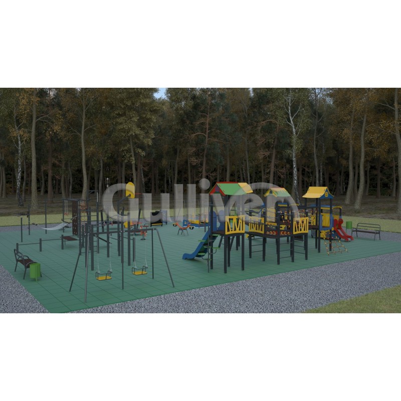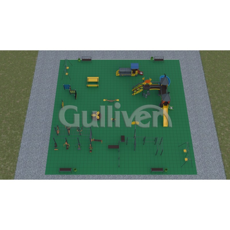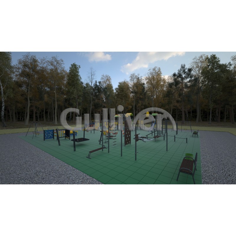 Проект майданчика у м. Хмельницький – ефективний, зручний у використанні, надійний, а також безпечний набір, який зміцнює м'язи ніг, рук і тулуба в цілому, зміцнює та підтримує серцево-судинну систему. Цей тренажер можна використовувати цілий рік, тому що він має зносостійке до різних погодних умов полімерне барвисте покриття та антивандальну структуру. Заняття на ньому сприяють прискоренню кровообігу в цих областях тіла та інтенсивному збагаченню м'язів киснем.
